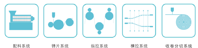 電容膜生產(chǎn)線由原料配送、擠出鑄片、縱向拉伸、橫向拉伸、后處理、收卷、分切等部分組成,用于生產(chǎn)各種規(guī)格具有優(yōu)良機(jī)械性能和電氣性能、良好的耐熱性、耐寒性、氣密性及尺寸穩(wěn)定性的雙軸定向電容膜。