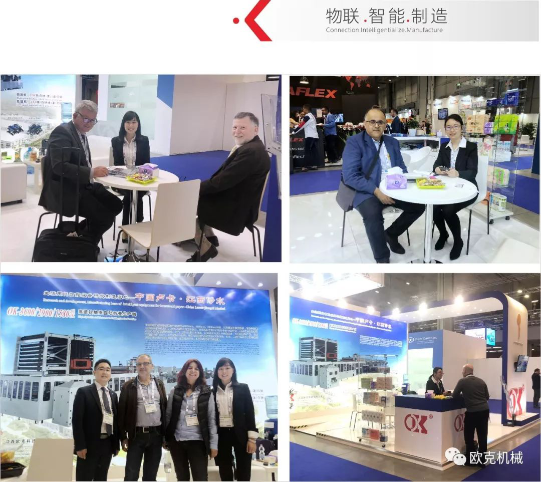 本次展會(huì)吸引來自世界各地的衛(wèi)生紙業(yè)專才將齊聚在意大利。展會(huì)開始后,歐克科技展廳機(jī)得到新老客戶的關(guān)注與支持,現(xiàn)場交流咨詢氛圍活躍,通過對歐克科技的生活用紙全自動(dòng)化生產(chǎn)線的結(jié)構(gòu)特點(diǎn)及適用介紹,讓歐洲客商們對中國制造有了新的認(rèn)識,對歐克科技有著深入的了解,展會(huì)第一天即得到多家客商邀約進(jìn)行下一步的合作洽談。